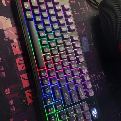 FreeWolf F75 mekaniskt tangentbord med RGB-belysning. Tangentbordet har trådlös anslutning via 2.4G USB och Bluetooth, samt stöd för Windows och Mac. Tangentbordet är designat för att användas med både dator och andra enheter som stöder dessa anslutningar.