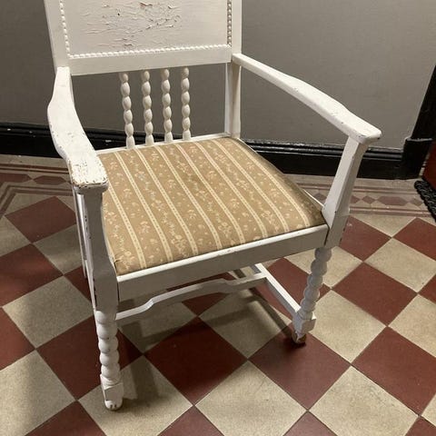Fin nitad karmstol med vacker nyans i guld,