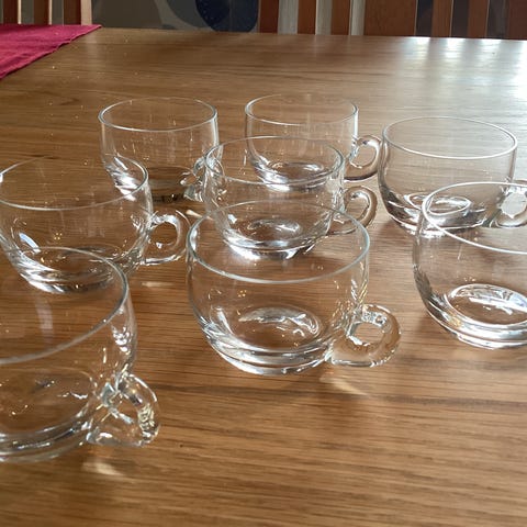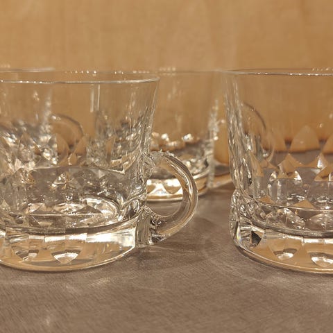 Punschglas/glöggmuggar i franskt pressglas. Tillverkade i la Bresle, Frankrike.