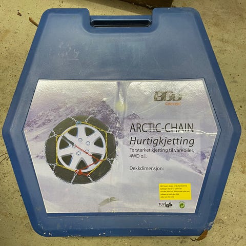 Snökedjor från Volvo för modell 200, 700 & 900. Däckstorlek: 185-R14, 195/65 R15, 205/55 R16. Det kan fattas någon eller några plasthakar.