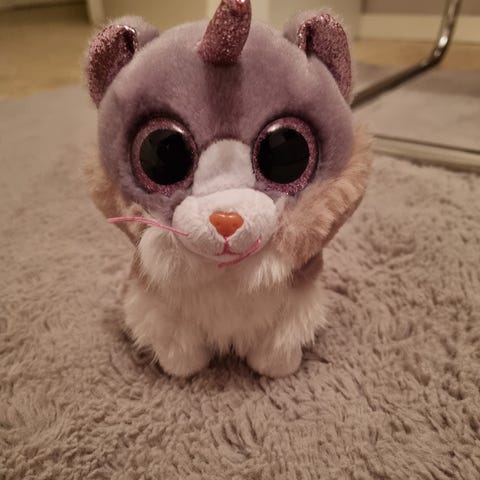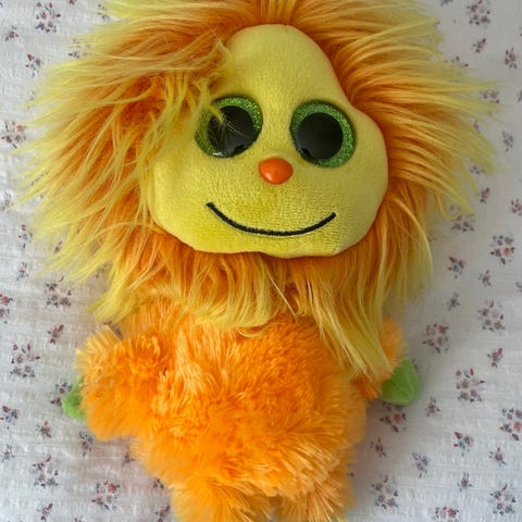 Ty gosedjur med paljetter i form av en dinosaurie. Produkten har stora ögon och är täckt av blå och gröna paljetter.