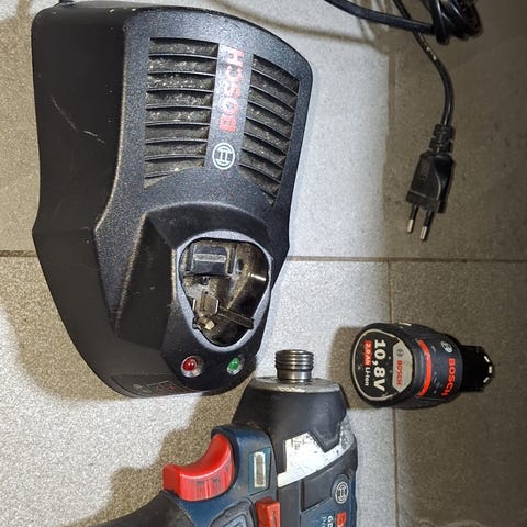Bosch GAL 1230 CV batteriladdare för 10,8V Li-Ion batterier med en kapacitet på 2,0 Ah. Laddaren är avsedd för laddning av Bosch batterier och har en kompakt design.