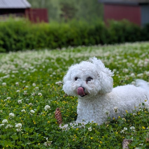 Han är en Shih Tzu–Bichon Frisé-blandning.