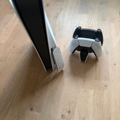 Nyligen inköpt Sony PlayStation 5 spelkonsol Digital Edition inklusive två DualSense trådlösa handkontroller.