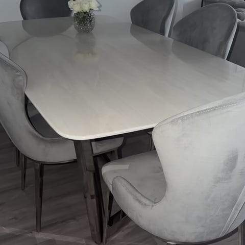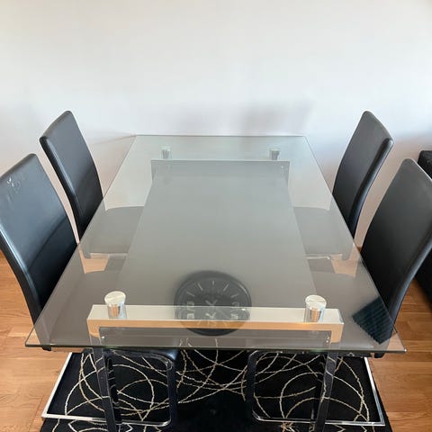 Svart/ vit glass lackerad MFP bord med 4 stolar köpte på Trendrum.