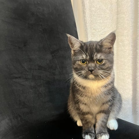 Katten är van vid människor och trivs bra i hemmet. Passar perfekt både som sällskap till familj eller till någon som vill ha en trygg och snäll vän.