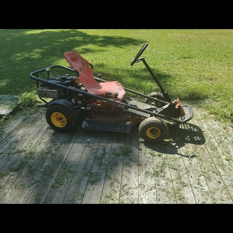 Motor funkar och klippagregat klipper bra men startmotor är fråmkopplat. Har två stycken och många delar extra. 2k per styck, köper du båda två då får du delar för att bygga en tredje, Chassi finns för den tredje.