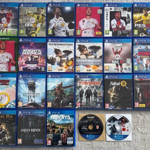 Playstation 4 spel inklusive Call of Duty WWII, Shadow of the Tomb Raider, FIFA 21 och FIFA 23. 150kr styck.