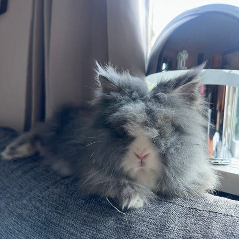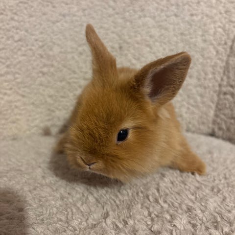 Är av rasen liten Rex, bor just nu ute men rasen fungerar även som innekanin.