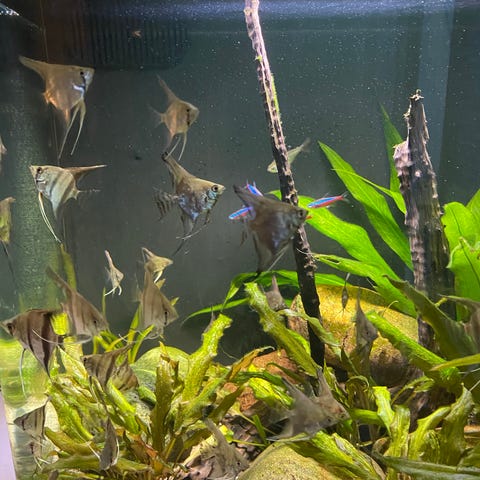 Hej! Jag har fem stora scalarer. De följde med ett akvarium som jag köpte, så jag vet inte vilken sort det är. De går i 28-29 grader varmt vatten tillsammans med mina diskus. Tre av dem är som den på bilden medan de två andra går mer åt det bruna hållet. Kommer fler bilder. De säljs tillsammans för 1000kr.
