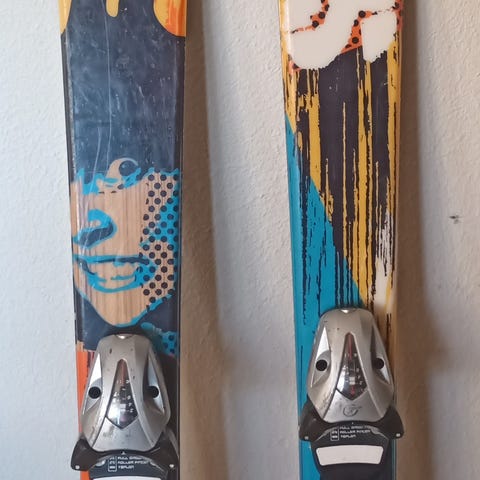 Slalomskidor med bindningar för barn i fint skick, inga anmärkningar.
