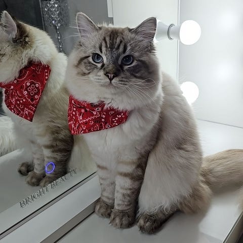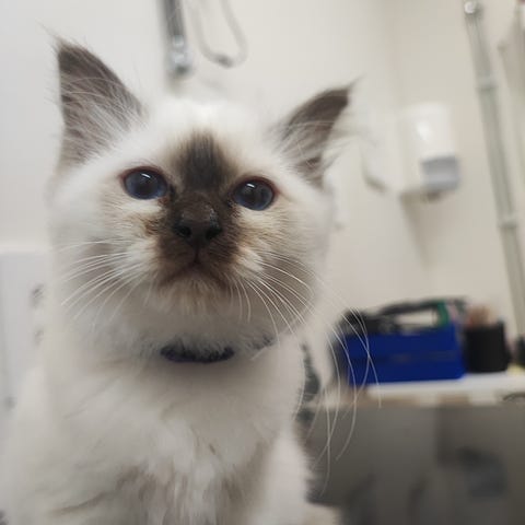 Lightning är mycket fluffig, väldigt tillgiven och kontaktsökande. Vill gärna vara med och tycker om att bli ompysslad.