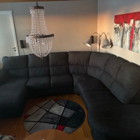 Soffa med schäslong från EM möbler som är riktigt skön att sitta i men har inte plats i nytt boende. Fungerar med robot damsugare då benen är lite högre. Djur och rökfritt hem.