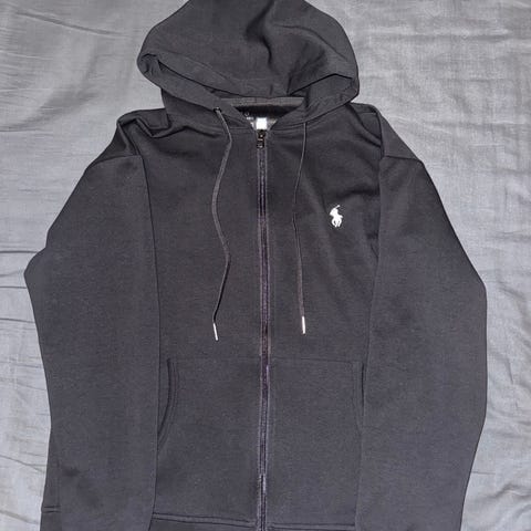 Säljer en stilren svart zip-up hoodie/tröja från Ralph Lauren i storlek M. Klassisk design med dragkedja framtill och diskret Ralph Lauren-logga på bröstet. Passar perfekt till både vardag och en mer uppklädd stil. Fastpris!!