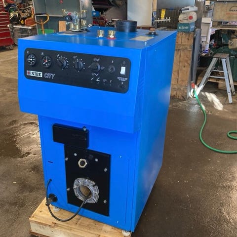 Kombipanna (Elpatron, pellets och ved). Jag hade tänkt byta ut min pelletspanna mot denna men den är lite för stor för att den ska passa bra i mitt pannrum så jag säljer den vidare.