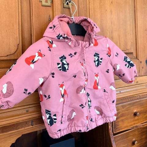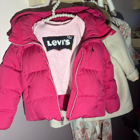 Supersöt rosa quiltad jacka med tryckknappar fram och en liten krage. Jackan har en broderad logotyp på bröstet.