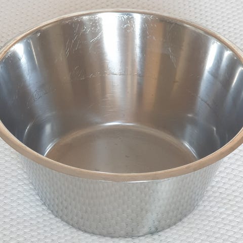 Rostfri bunke 50-talet. Flätad plast / vit svart Ovanligt ex. I bra skick. Plasten är hel Pris 250kr. Kan sändas med post nord eller avhämtas enligt ök