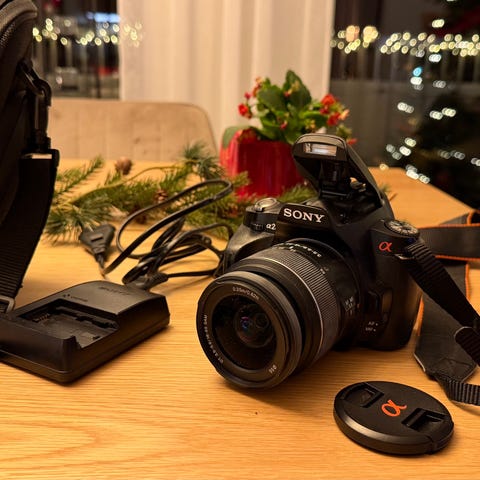 Saknar batteri laddare och objekt,köpte från återbruket så har inte testat men i ok skick ingen sönder delar,