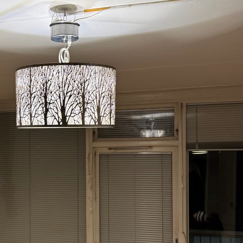 Vit taklampa med tre standardlampor.