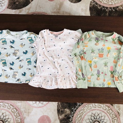 Lindex långa kortärmade toppar för barn, i bra skick, storleken är 122, tvättat med parfymfritt tvättmedel, kommer från djur och rökfritt hem, finns i Nacka, kan skickas mot fraktkostnaden.
