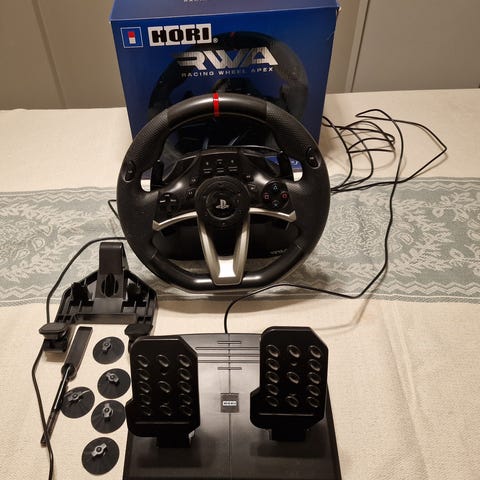 Playstation Hori Racing Wheel Apex RWA i nyskick endast använd några fåtal gånger. Funkar till PS4, PS5 samt PC. Justeras knapparna(se bild 2). Pris kan diskuteras vid snabb affär. Skriv gärna om ni har frågor.