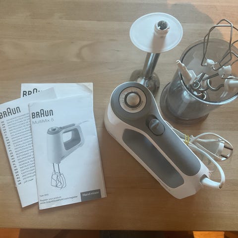 Stavmixer från Braun med tillbehören blender, ballongvisp och stavmixer.