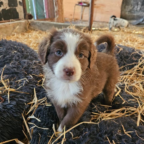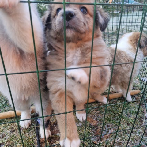 Valp 4 tik - röd melerad helsvans med blå ögon