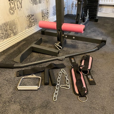 Säljer en viktladdad pulldown med vikter upp till 50+kg, + hantel stänger 1500kr