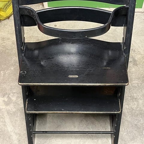 Stokke barnstol med 2st nyfödd-insatser. Utrustad med säkerhetssele och justerbar lutning. Passar för små barn och erbjuder komfort och stöd under sittande.