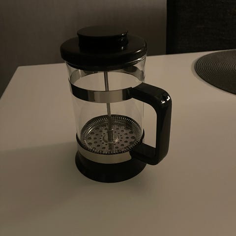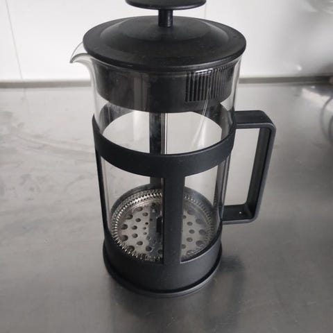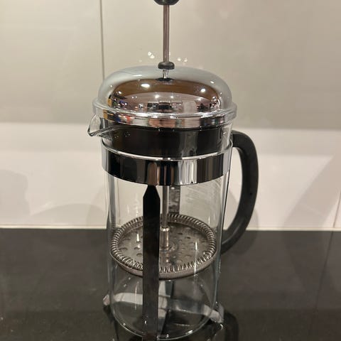 Bodum kaffepress med kapacitet för 8 koppar. Tillverkad av glas och rostfritt stål med svart handtag och lock. Passar för bryggning av kaffe med pressmetod. Knappt använd.