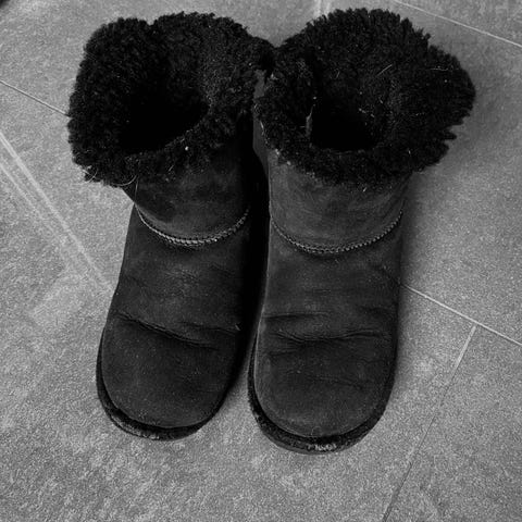 UGG Classic barnsko i storlek 23,5 för flicka. Skorna är rosa med ett mönster i glittrig regnbågsfärg och har en mjuk och varm insida av fårskinn. Håller barnets fötter varma i vinter! Använt skick men inget som påverkar funktionen och de ser fortfarande fina ut, bästa vinterskorna till barn som lätt fryser om tårna!
