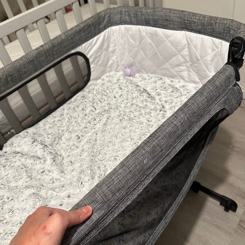 Säljer vår bedside crib som är som ny. Perfekt till en nyfödd. Inget att anmärka på. Man kan falla ner en sida med dragkedjan.