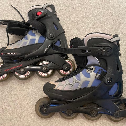 Skorna är i gott skick och fungerar felfritt. Normalt slitage finns på hjulen, men inget som påverkar funktionen. Spännen, remmar och skal är hela och i bra skick.