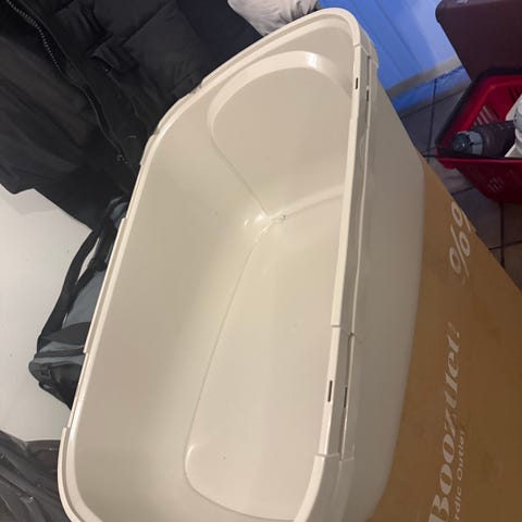 Savic Nestor Jumbo kattlåda med lock i grå och vit färg. Mått cirka 66,5 x 40,5 x 41,5 cm. Tillverkad av plastmaterial. Utrustad med lock för att minska spridning av kattströ och lukt.
