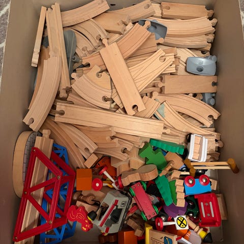 BRIO Träjärnvägsset - en låda med räls å tåg + bonus låda med felxitrac