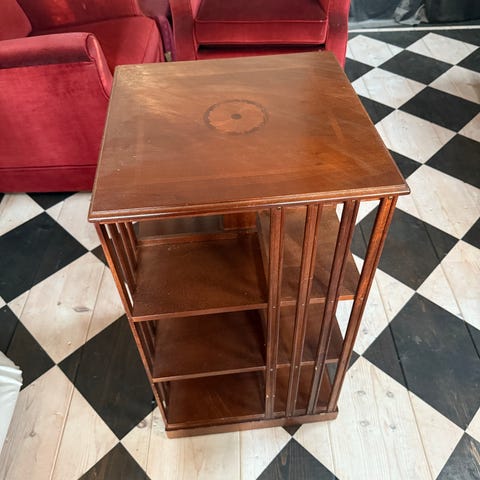 Läcker och samtidigt praktisk möbel på hjul. Både favoritböckerna och kaffekoppen nära till hands, kan livet bli bättre! Snurrbar. Mått: 50 * 50 * 70.