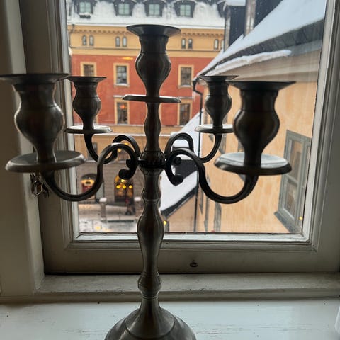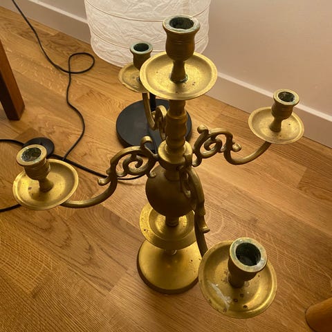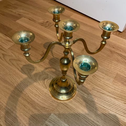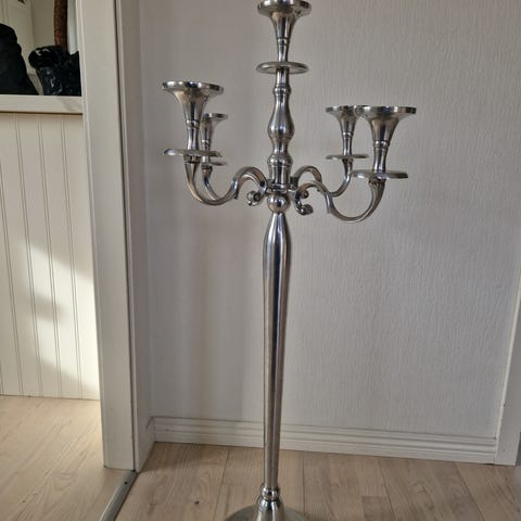 Kandelaber - Ljusstake i metall. Fem-armad. Golvkandelaber. Materialet är metall silverfärg. Blank yta. Använd men mycket bra skick.