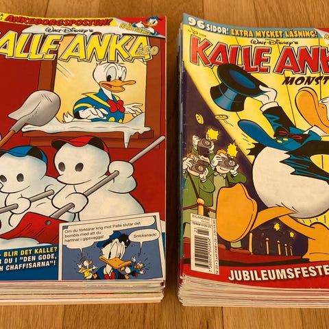 Samling av Kalle Anka tidningar från Disney. Tidningarna är i olika nummer och samlade i flera förvaringslådor. Innehåller klassiska serier och karaktärer från Kalle Anka universumet.
