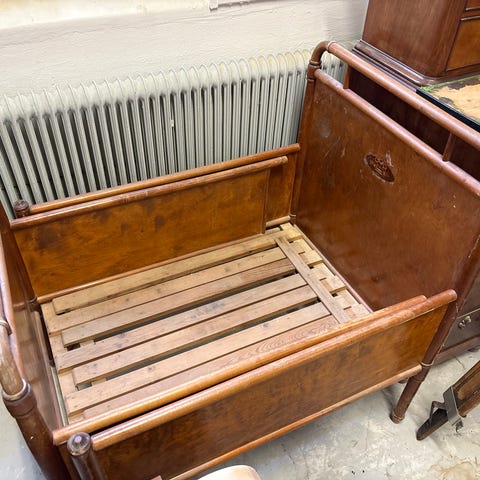 Vacker gammal växasäng väl använd och älskad! Den har sina skavanker men inget som stör funktionen
