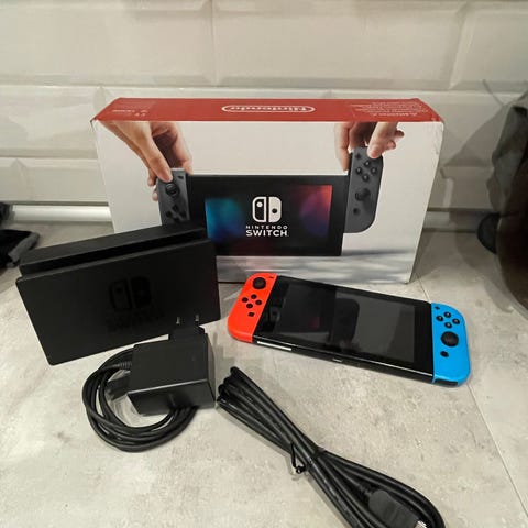Nintendo Switch inkl tillbehör, laddare och 5 spel.
