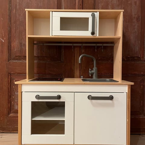 IKEA Lekkök i trä med spis, vask och förvaringsutrymmen. Designad för barnlek och utveckling av fantasi och motorik.
