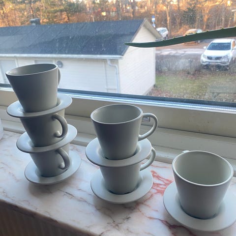 Fint skick! En av muggarna har en fläck på insidan (sannolikt från kaffe)