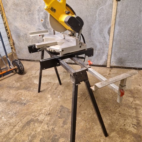 Gersåg med stativ med löstagbara ben o rullbord