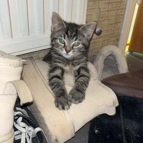 Nu söker vår fina kattunge ett nytt, kärleksfullt hem.