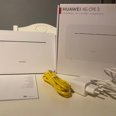 Huawei WiFi-router Olåst (fungerar med alla operatörer). Tar emot 4G- och 5G-simkort, men hastigheten är 4G. Fungerar utmärkt och är i gott skick