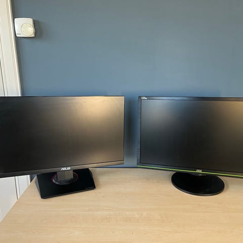 Säljer två AOC datorskärmar då de inte används längre. Skärmarna är inköpta 2020/2021 och fungerar felfritt. Har haft skärmarna på stativ så "fötterna" är oanvända.