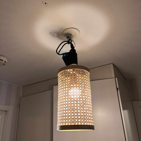Lampan är i fint begagnat skick, inga sprickor i glaset. El och sladd fungerar som de ska.