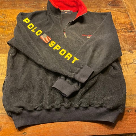 Ralph Lauren Polo långärmad huvtröja i storlek L för herr. Tillverkad i bomull med svart färg.