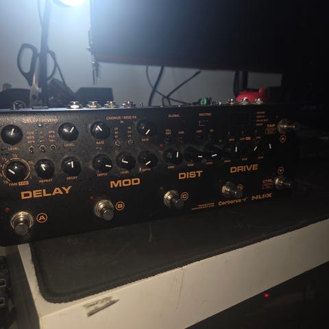 Säljer mitt multipedalbord NUX MG-30. Pedalen är i toppskick, fungerar helt felfritt och plastskyddet på displayskärmen sitter fortfarande kvar.