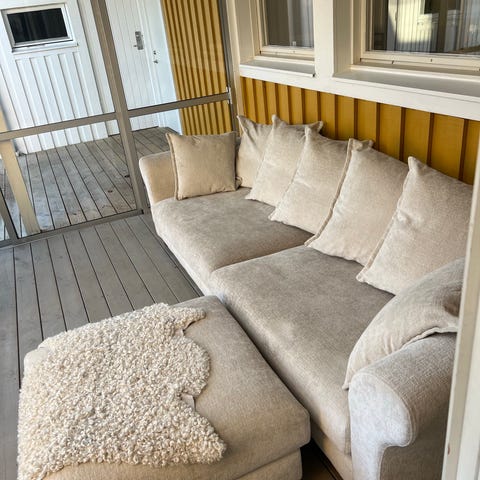 Trevlig och bekväm soffa med fotpall ( 90*70*40